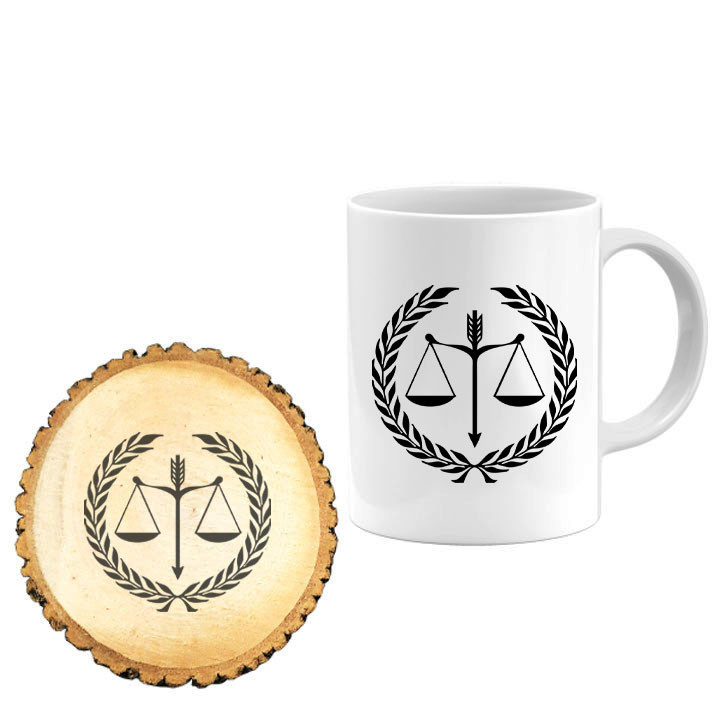 ماگ گالری وبفر مدل ترازوی عدالت به همراه زیر لیوانی