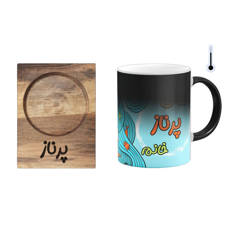 ماگ سرامیکی طرح ماه اسفند به همراه زیرلیوانی چوبی