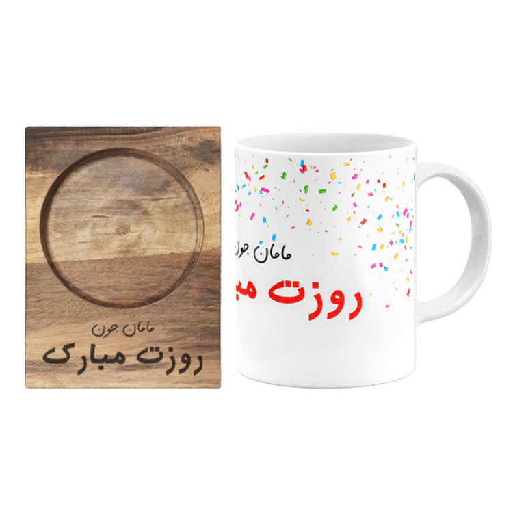 ماگ گالری وبفر مدل روز مادر به همراه زیر لیوانی