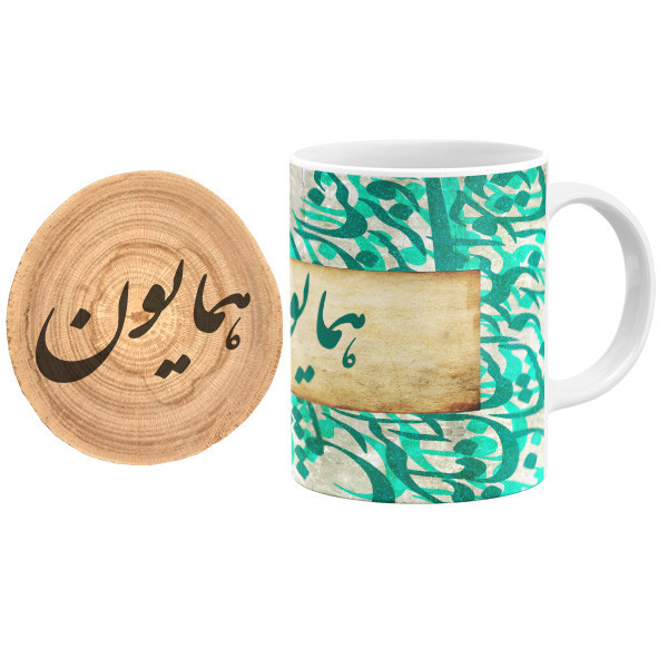 ماگ گالری وبفر مدل خوشنویسی طرح همایون به همراه زیر لیوانی