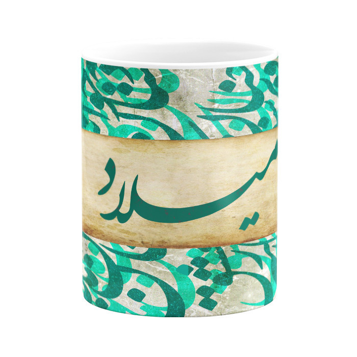 ماگ گالری وبفر مدل خوشنویسی طرح میلاد به همراه زیر لیوانی