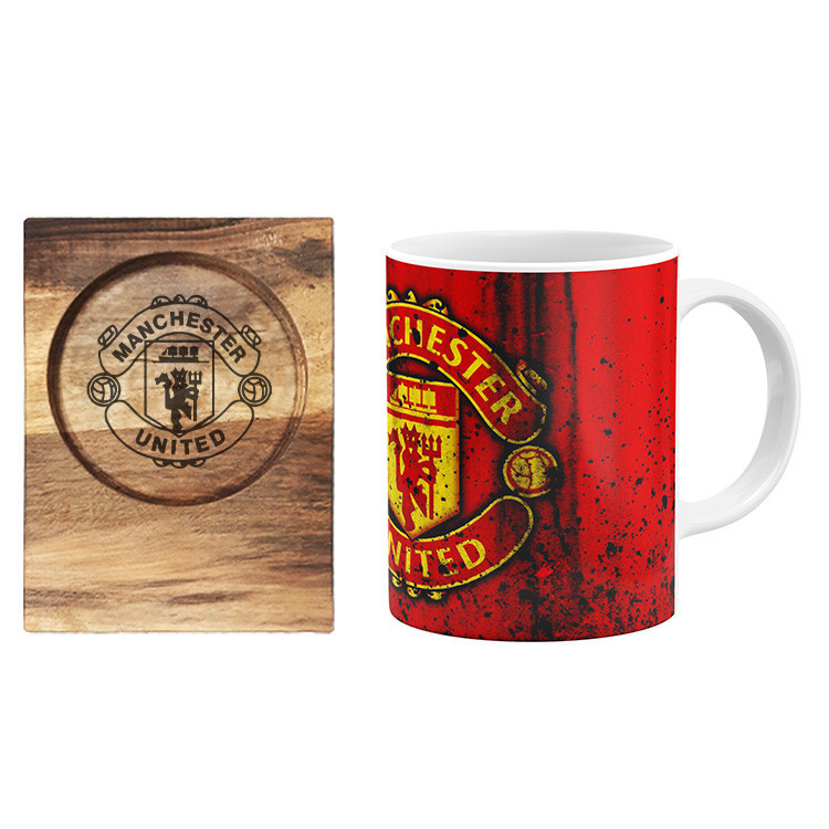 ماگ گالری وبفر مدل منچستر یونایتد به همراه زیر لیوانی