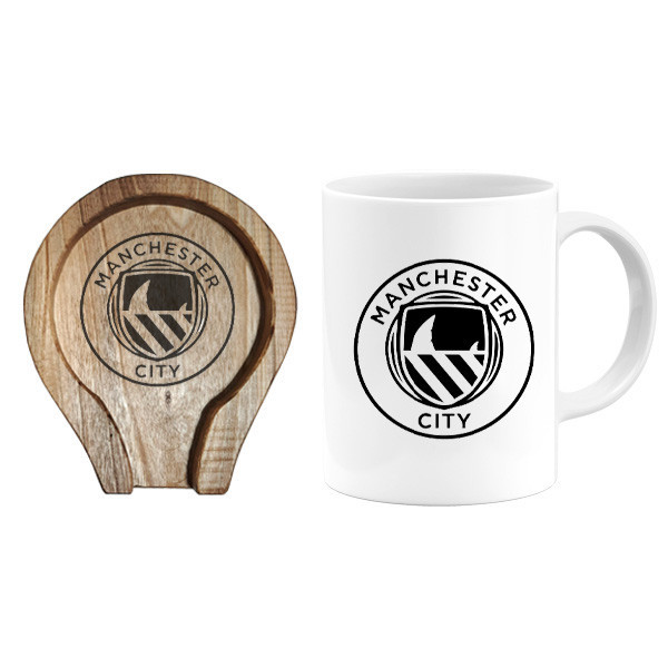 ماگ گالری وبفر مدل منچستر سیتی به همراه زیر لیوانی
