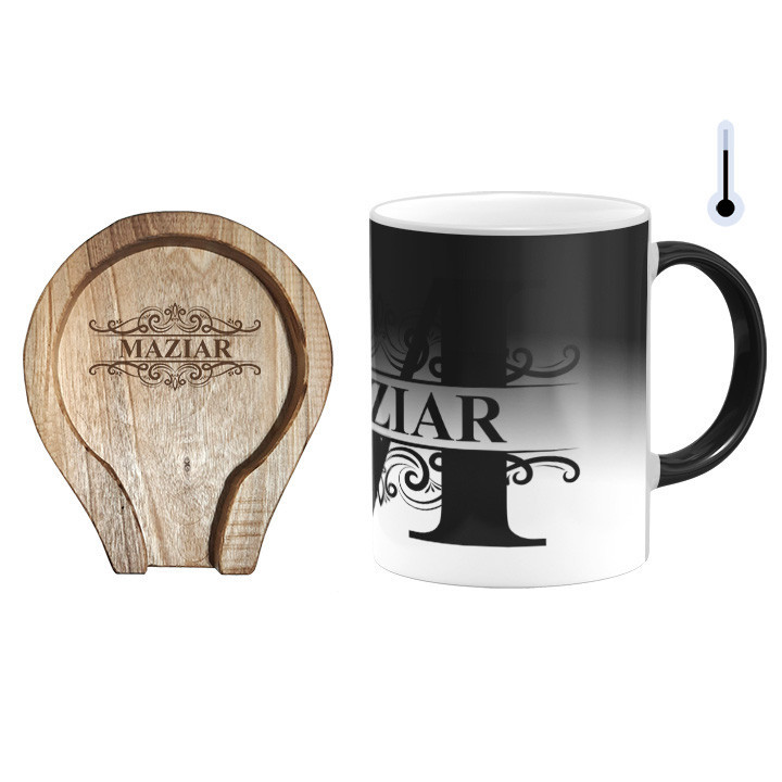 ماگ حرارتی گالری وبفر مدل اسم مازیار به همراه زیر لیوانی