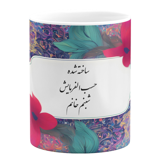 ماگ گالری وبفر مدل حسب الفرمایش طرح شبنم خانم به همراه زیر لیوانی